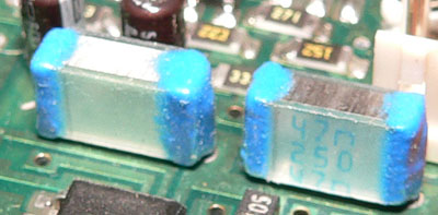 The capacitors specified as CX on the circuit board and diagram are the S&H capacitors and as such should be high quality low leakage sorts, such as polypropylene. None the less, quite satisfactory results can be achieved using common 100n MKT capacitors. The value of them will depend on the speed at which you intend to run the unit. The larger the capacitor, the lower the maximum speed at which it will run, but the longer it will be able to hold the voltage without drooping. 47n is probably the smallest that should be used, though drooping becomes quite noticeable at slow speeds. It may be possible to go as high as 220n for really slow operation, though this will somewhat limit the maximum speed (see the notes below). Do NOT use capacitors in which the dielectric is exposed: one such example is block shaped and green in color. Another example is shown below. They will not work.